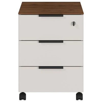 Ces armoires de rangement GW-Ancona sont équipées de tiroirs à fermeture automatique pour une ouverture et une fermeture en douceur. Au total, trois tiroirs avec poignées latérales en métal noir, dont le dessus est verrouillable, permettent de ranger les documents, les stylos et le matériel de travail. L’armoire de bureau roulante est particulièrement robuste grâce à son revêtement en résine mélaminée et ses bords en ABS durables. De plus, les roulettes, dont deux verrouillables, font de cette armoire à roulettes de bureau un compagnon de travail mobile et pratique.