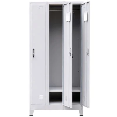 Avec 3 compartiments séparés avec des portes, cette armoire à casiers dispose d’un espace de stockage suffisant pour garder des vêtements et d’autres effets personnels en toute sécurité. Chaque compartiment a une barre à cintres, un miroir et un porte-nom. Les pieds en plastique empêchent vos planchers d’être rayés.