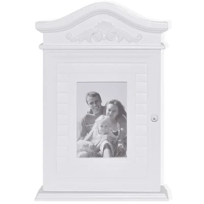Cette armoire à clés, dotée d’un cadre photo en verre, est une aide parfaite pour organiser vos clés. Les six crochets de fer à l’intérieur de l’armoire sont conçus pour accrocher des clés ou d’autres pièces.
