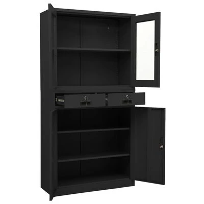 VidaXL Armoire de bureau Anthracite 90x40x180 cm Acier et verre trempé