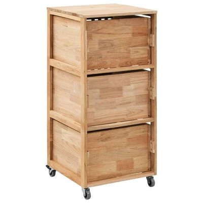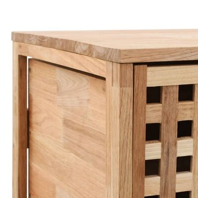 L’armoire de salle de bains est équipée de trois paniers qui offrent suffisamment d’espace de rangement pour les serviettes, le linge, les produits d’hygiène, etc. La conception en treillis permet une bonne ventilation des articles à l’intérieur des paniers. Fabriqué en noyer massif et en contreplaqué, l’armoire est très robuste et durable. Grâce aux quatre roulettes, l’armoire est facile à déplacer.