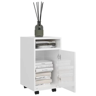 VidaXL Armoire latérale avec roues Blanc brillant 33x38x60 cm Aggloméré