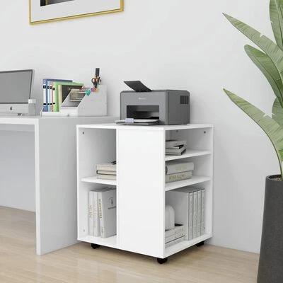 Elle est fabriquée en aggloméré de qualité, durable et facile à nettoyer. Le dessus rectangulaire peut être utilisé pour ranger votre imprimante, papier et accessoires sous ou à côté de votre bureau pour économiser de l’espace. Grâce aux roulettes, dont deux sont verrouillables, l’armoire à roulettes est particulièrement mobile et universelle.