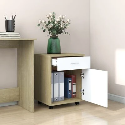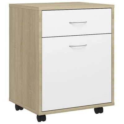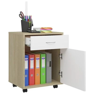 VidaXL Armoire à roulettes Blanc et chêne Sonoma 45x38x54 cm Aggloméré