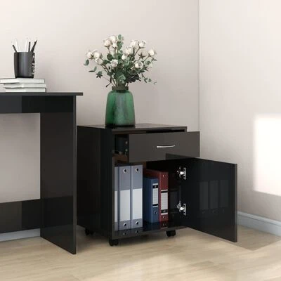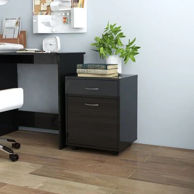 VidaXL Armoire à roulettes Noir brillant 45x38x54 cm Aggloméré