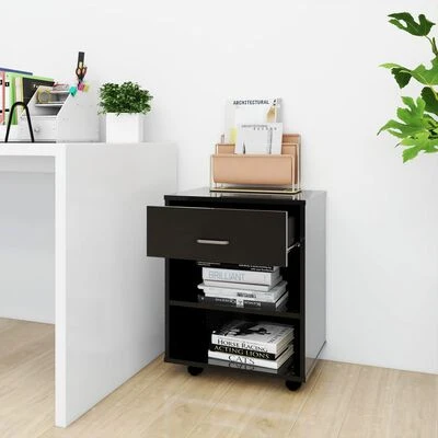 VidaXL Armoire à roulettes Noir brillant 46x36x59 cm Aggloméré