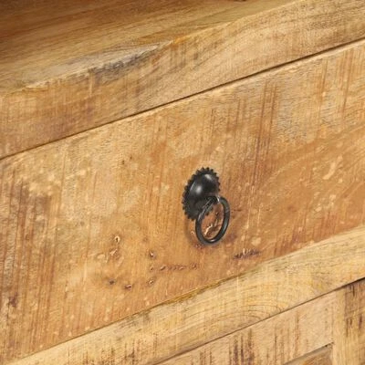 Le buffet en bois est fait de bois de manguier brut avec une finition naturelle, un bois dur tropical avec la force de soutenir le poids. Il résiste également à l’usure du temps, ce qui le rend stable et durable. Le savoir-faire et les beaux grains de bois rendent chaque meuble unique et légèrement différent l’un de l’autre. Cette armoire latérale dispose également d’une porte, d’un tiroir et de deux étagères offrant un grand espace de rangement.