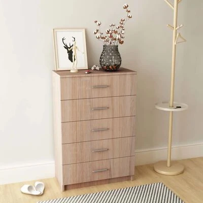 Ce meuble est fabriqué en bois d’ingénierie. Il dispose de 5 tiroirs pour fournir l’espace suffisant pour le rangement de vos divers articles, tout en rendant votre pièce bien rangée et propre. Les accessoires de montage mural et l’ancrage mural empêchant le meuble de rangement de basculer sont inclus dans la livraison. Ce meuble de rangement durable est facile à nettoyer. L’assemblage est facile.