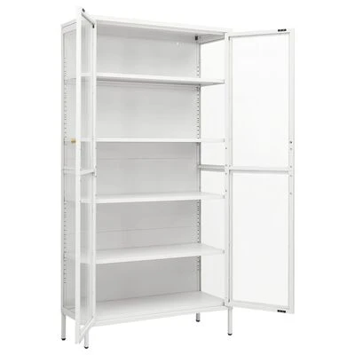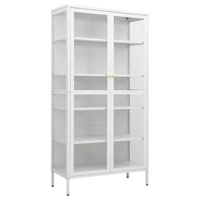 Fabriquée en acier et en verre trempé, la construction de cette armoire de rangement est solide et durable, assurant des années de service. L’ armoire latérale dispose de 4 étagères réglables, offrant amplement d’espace pour ranger des livres, des magazines et d’autres objets personnels. De plus, elle est également facile à nettoyer avec un chiffon humide.
